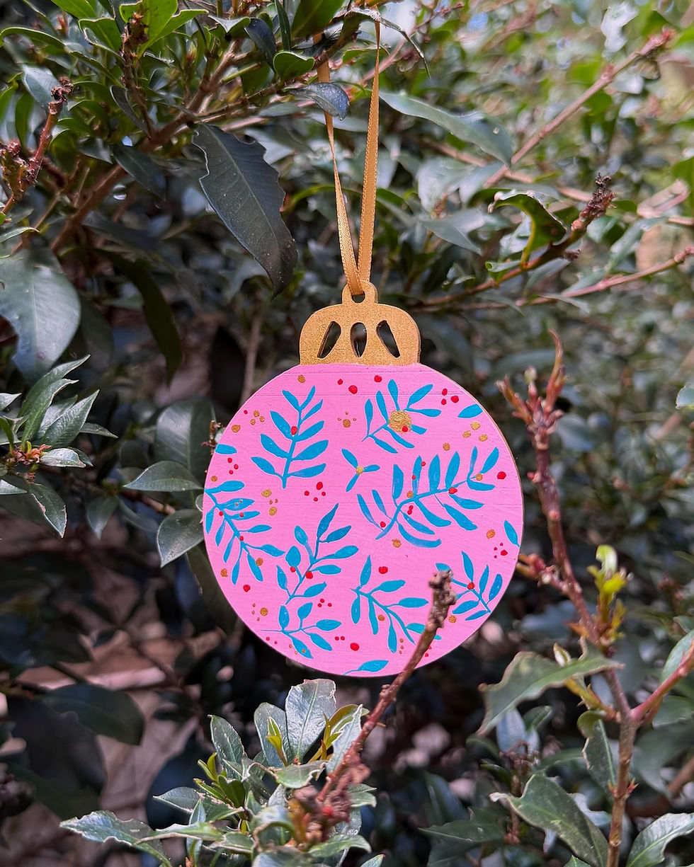 'Wildflower Whimsy – Yellow' round wooden ornament
