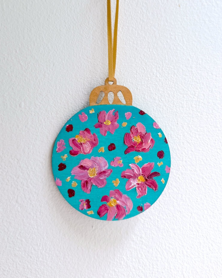 'Turquoise Garden' round wooden ornament